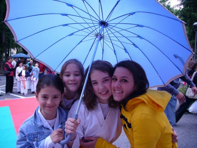 img 3 – comincia a piovere, la Laura con alcune bambine si riparano con